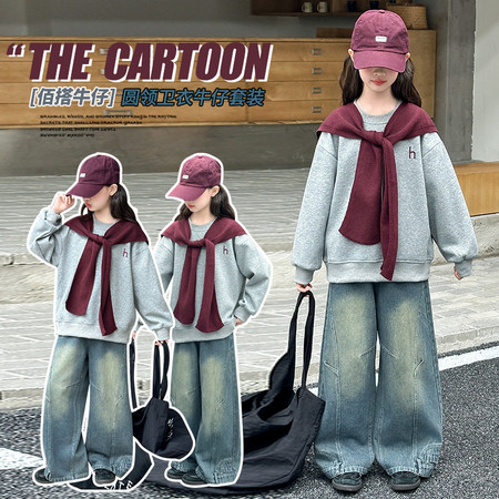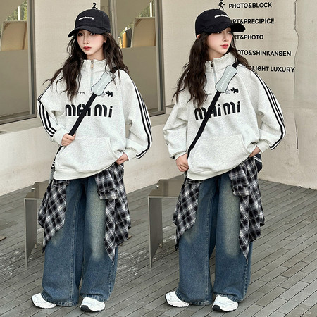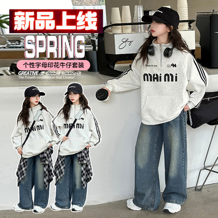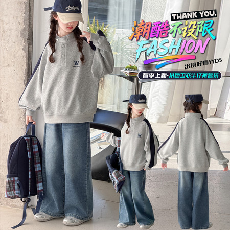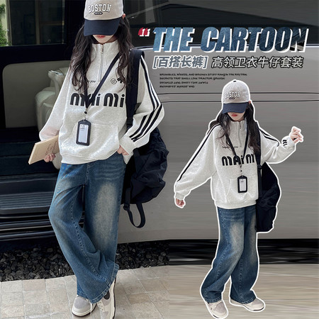 1*0收藏“055半拉链女童卫衣牛仔裤套装”