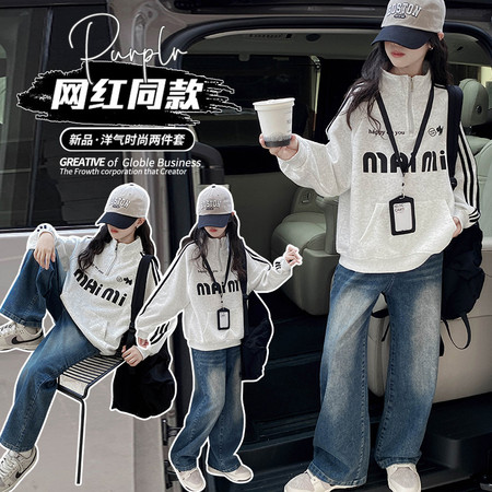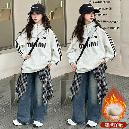 1*0收藏“BQM037加绒紫色带帽牛仔套装”