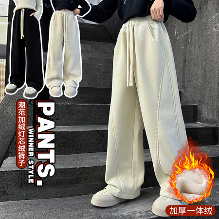 1*2下载视频“BQM077款加绒侧边条裤子”