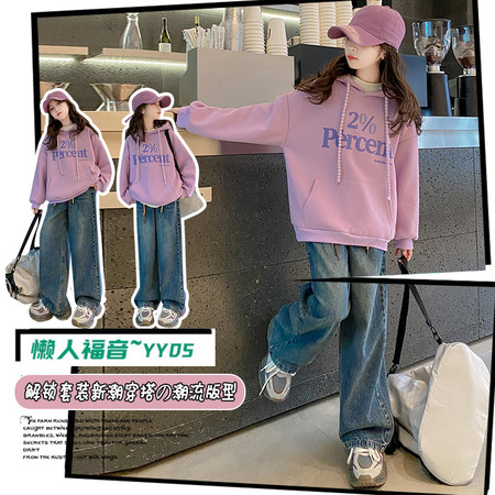 1*5收藏“076披肩卫衣牛仔裤套装”