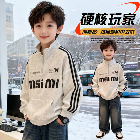 1*4收藏“男童055半拉链卫衣套装”